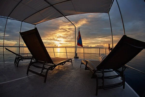 Pacific Master’s main deck comprises a spacious, indoor dining room along with a camera station, complete with numerous charging points and storage space. After a fantastic day’s diving, unwind and relax on the upper deck’s indoor lounge and bar area which is fitted with a plasma screen for guests to watch movies or show off their photos. For those who prefer to relax with a breath of sea air, there is a shaded outdoor relaxation area and large sundeck with lounge chairs to sink into and soak up the atmosphere.